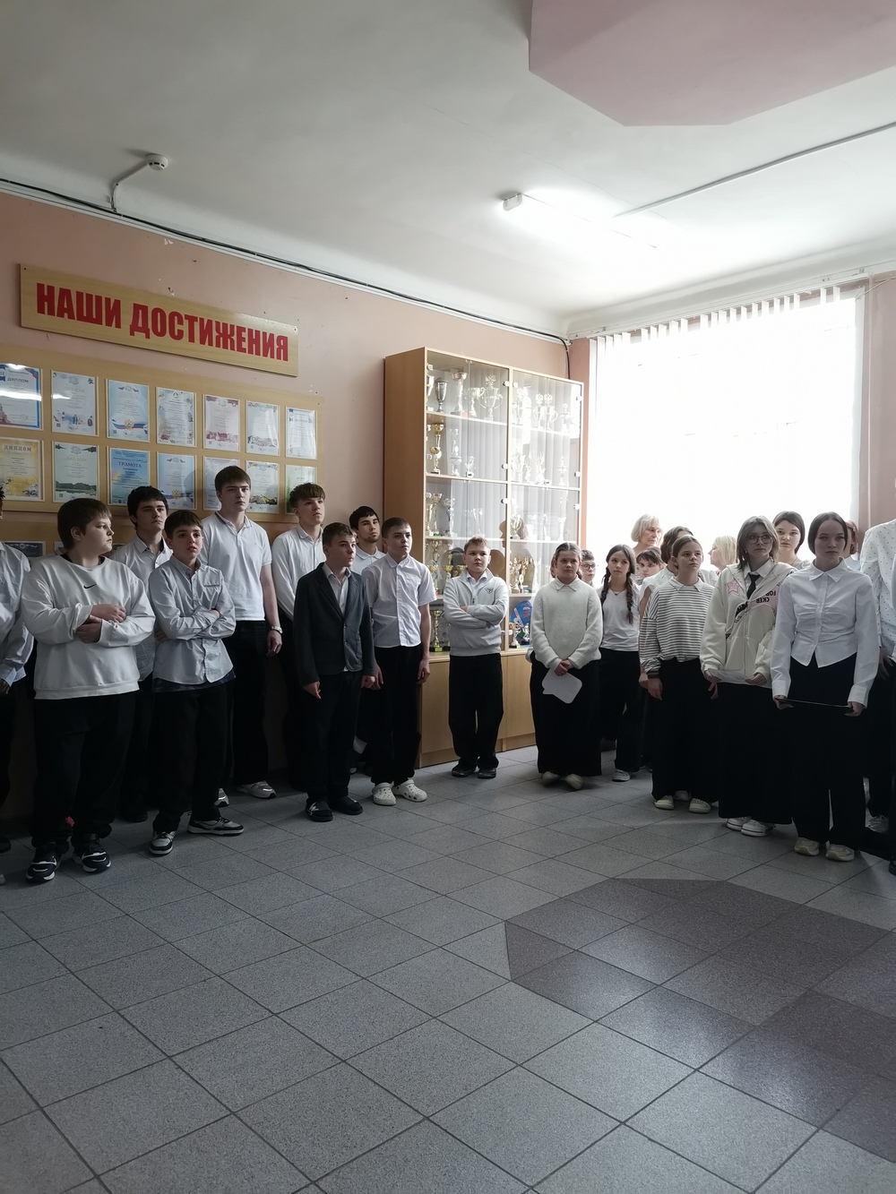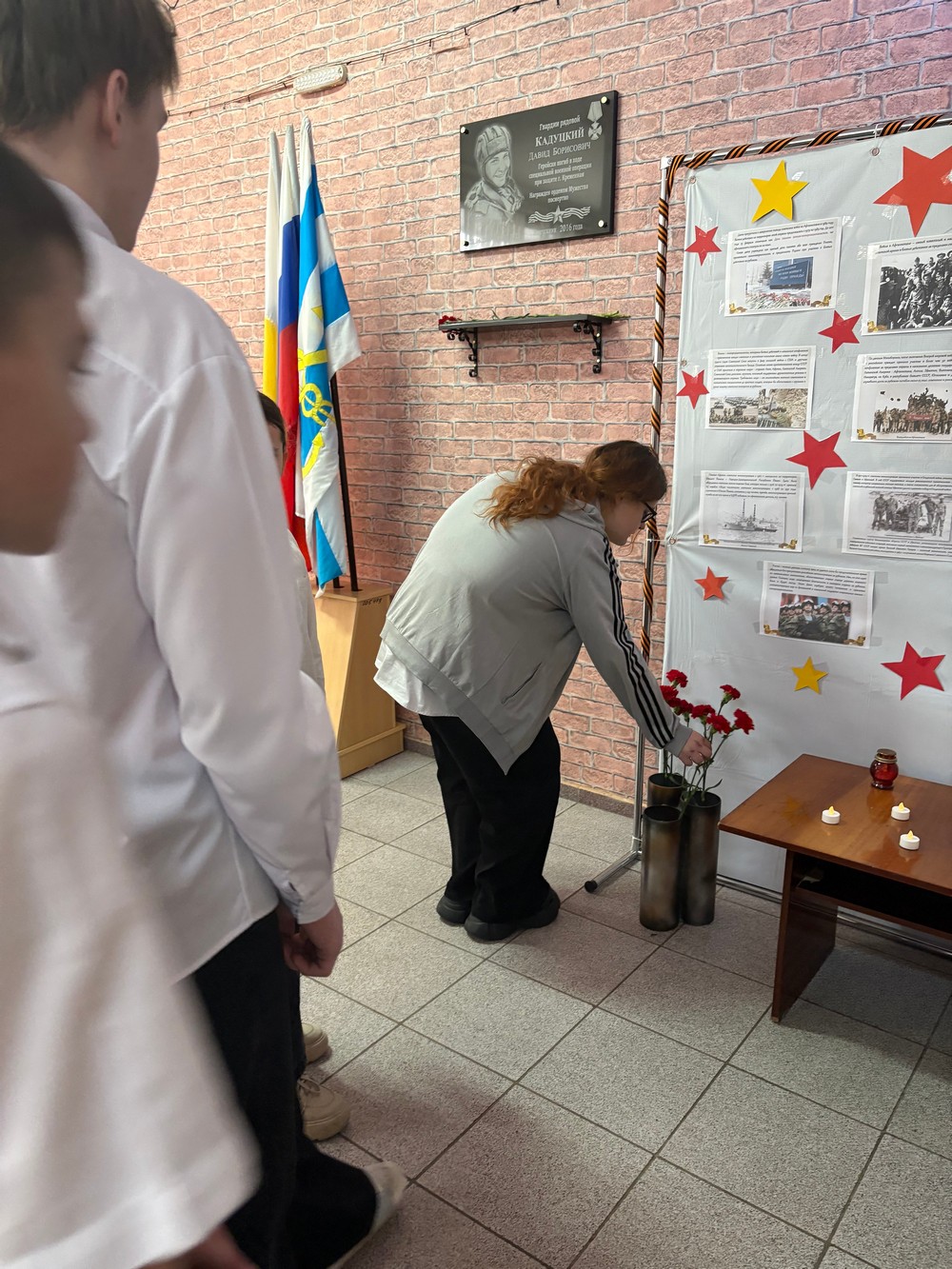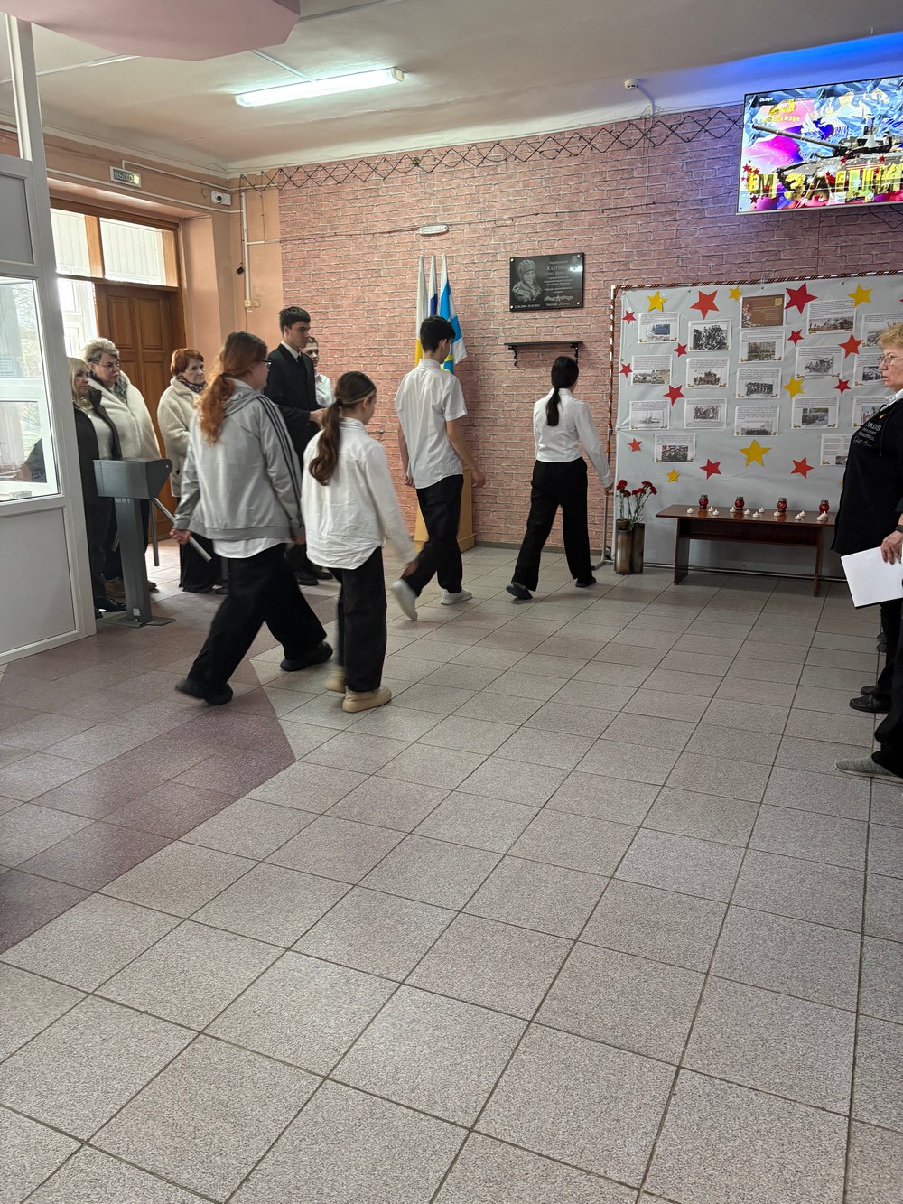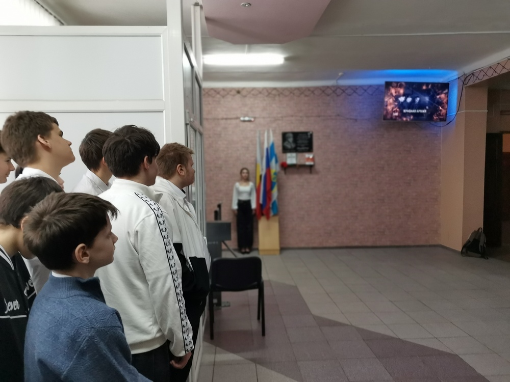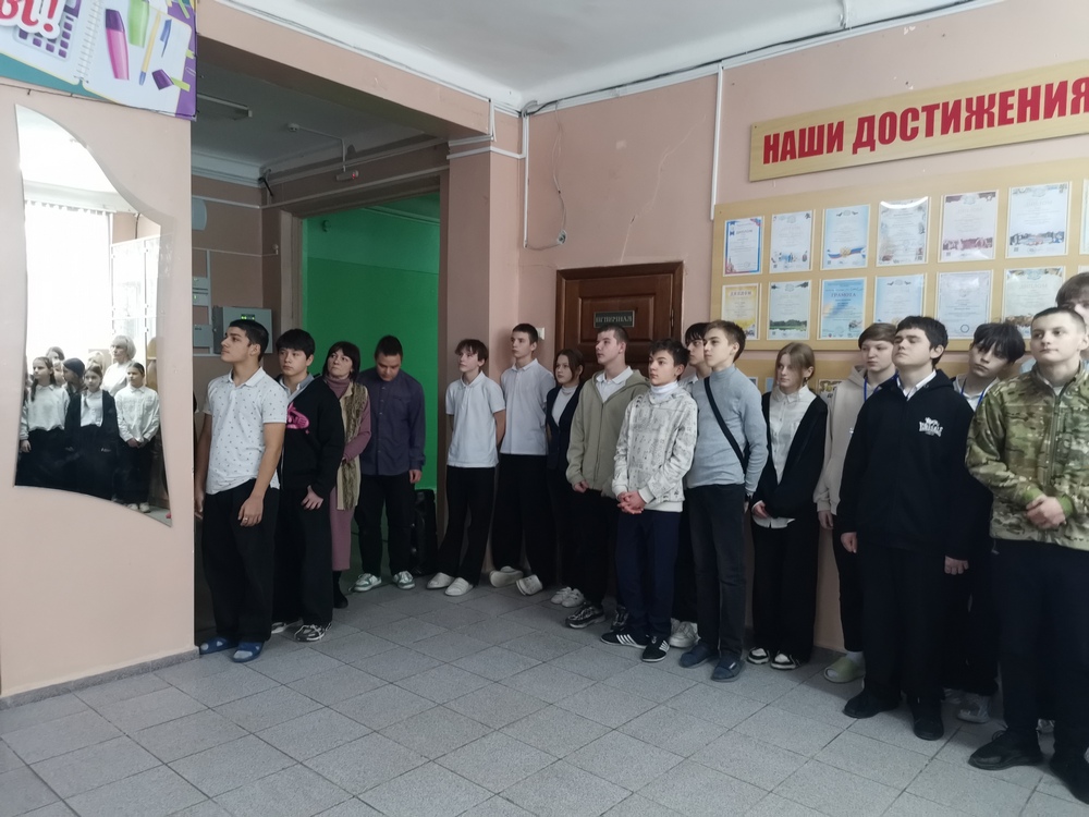 Участникам линейки был представлен видеосюжет, посвященный подвигу россиян, исполнивших служебный долг за пределами Отечества. Яркой эмоциональной точкой этой линейки стало живое исполнение под гитару песни «Письмо маме» учеником 9 класса Новиковым Даниилом.