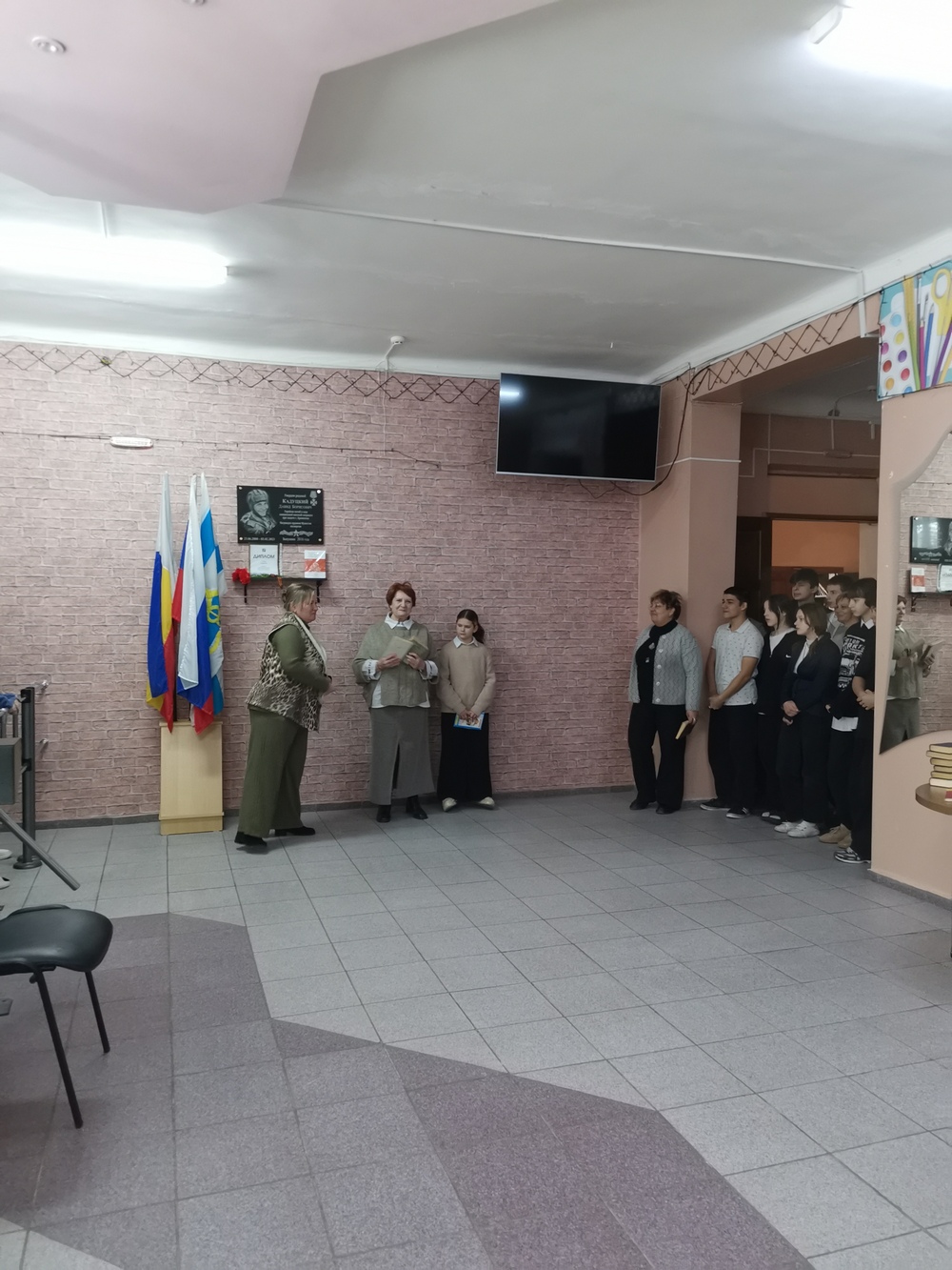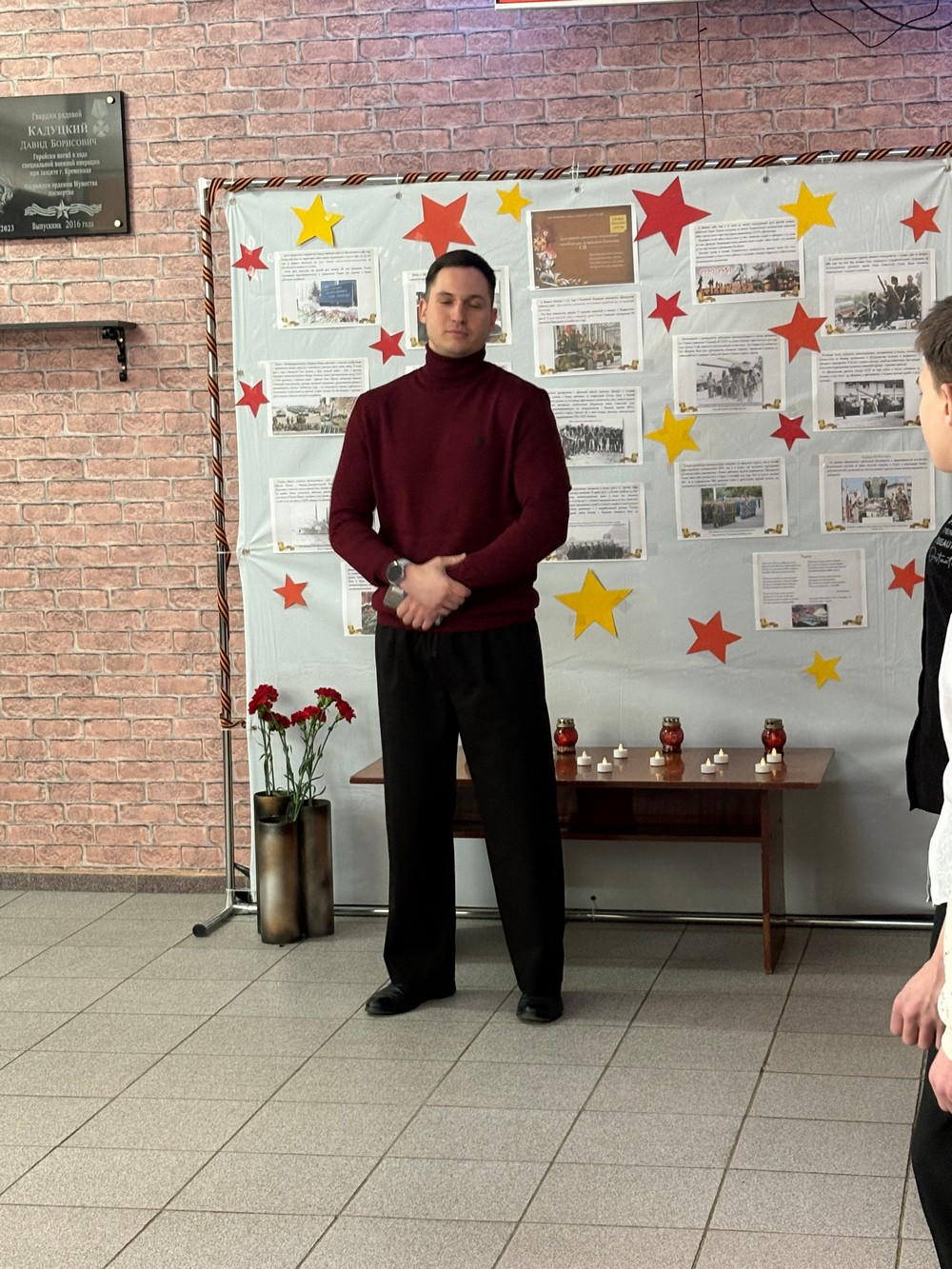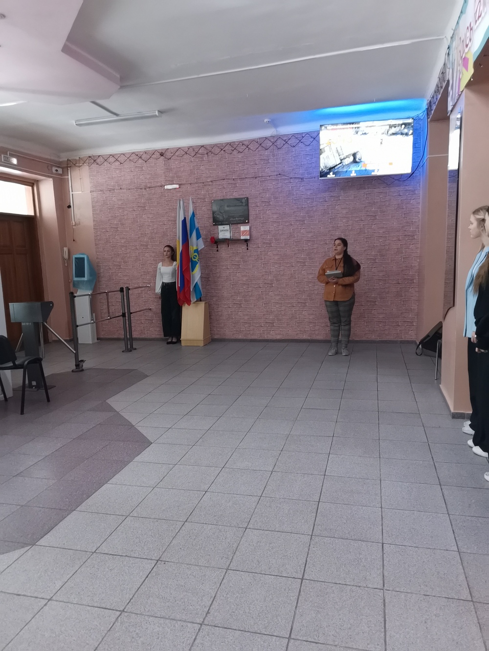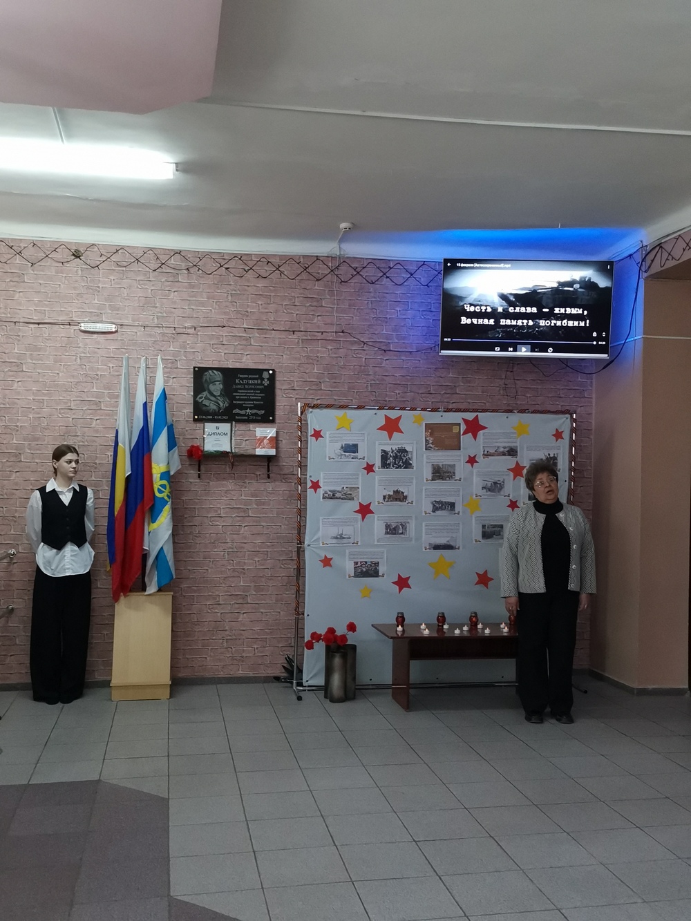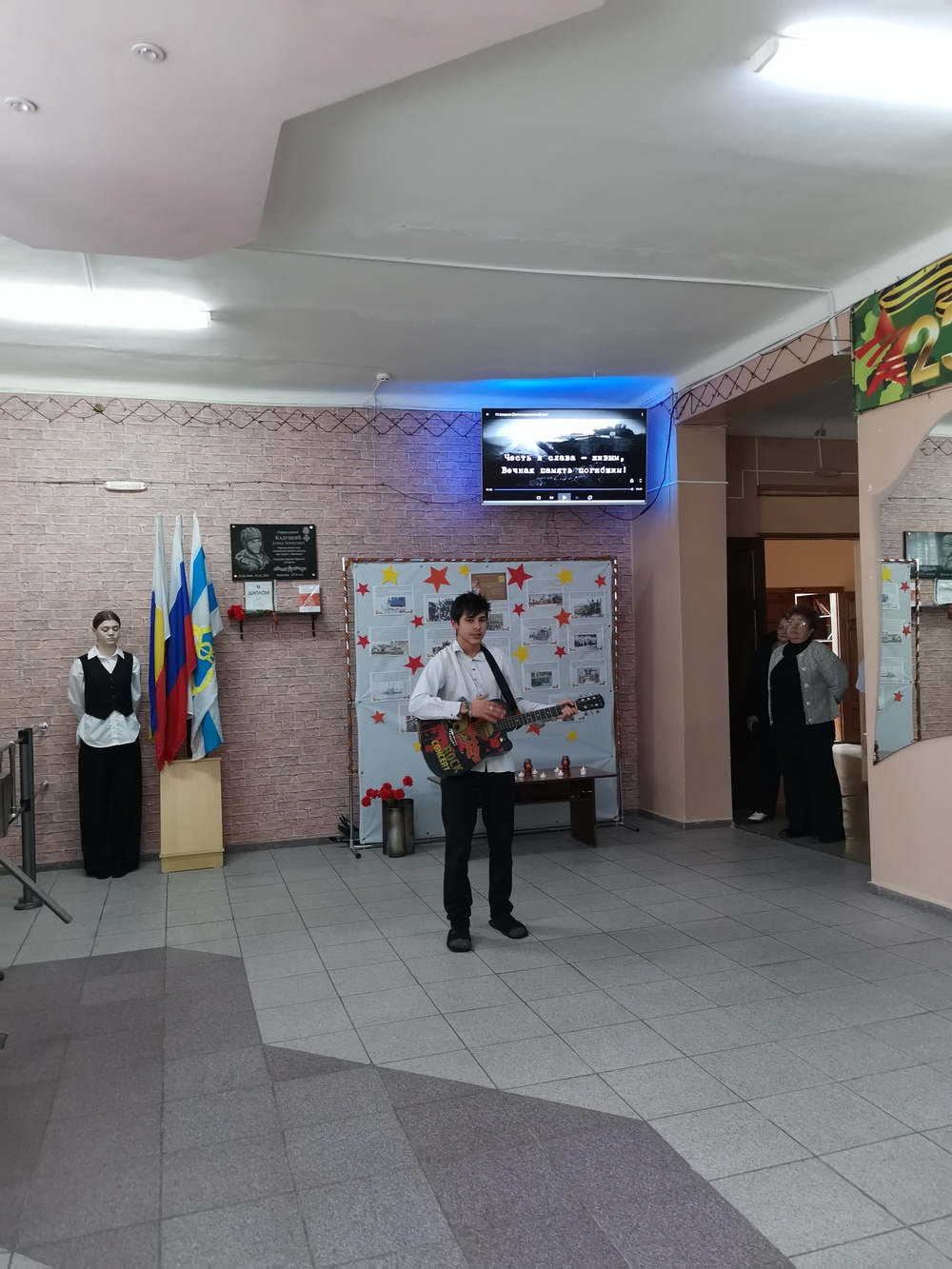 Участникам линейки был представлен видеосюжет, посвященный подвигу россиян, исполнивших служебный долг за пределами Отечества. Яркой эмоциональной точкой этой линейки стало живое исполнение под гитару песни «Письмо маме» учеником 9 класса Новиковым Даниилом.