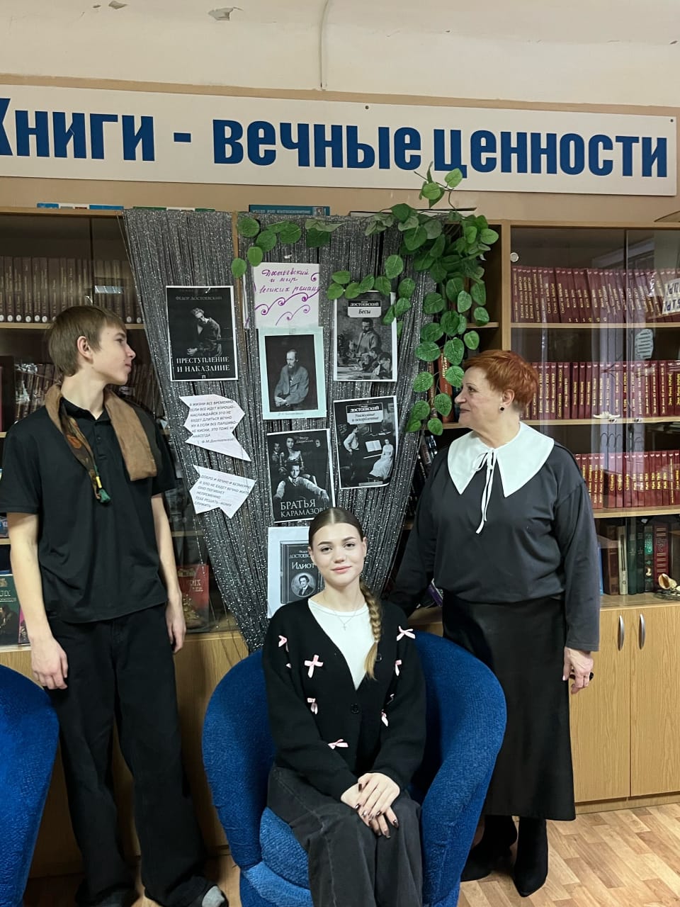 В день рождения Федора Михайловича Достоевского в школьной библиотеке для старшеклассников были представлены литературные зарисовки. В роли корреспондента выступила Чеберя Дарья, ученица 11 класса, в роли писателя – Кисляк Захар, ученик 9 класса. Из репортажа о знаменательных датах в жизни писателя и о его отношении к своим произведениям, обучающиеся поняли, что и сегодня Ф.М. Достоевский - один из самых читаемых писателей в мире. Он был признан классиком русской литературы и одним из лучших романистов мирового значения. Ребятами была разыграна сценка из произведения «Преступление и наказание». В роли Сони Мармеладовой читала Чипурная Дарья, в роли Родиона Раскольникова выступил Хруленко Николай. Такие мероприятия призваны поддерживать интерес детей к чтению классической литературы, способствовать общему их развитию.