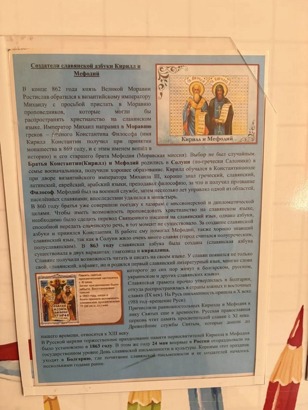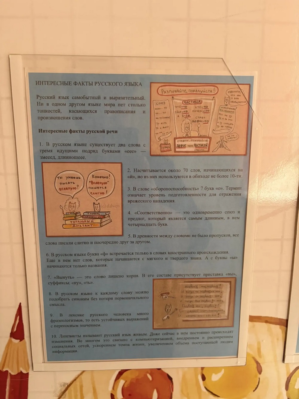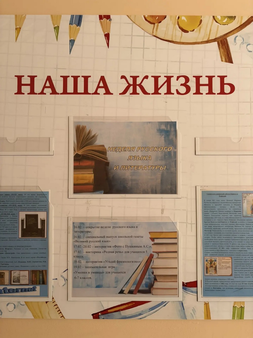 Очередной выпуск школьной стендовой газеты «Наша жизнь» посвящен проводимой в филиале предметной неделе русского языка и литературы. Выпуск под названием «Великий русский язык» был подготовлен под руководством учителя русского языка и литературы Титаренко Дарьи Николаевны. На страницах газеты рассказывается о возникновении письменности и алфавита на Руси, об истории становления русского языка, о жизни и деятельности создателей славянской азбуки Кирилла и Мефодия. Особое внимание ребят было приковано к страничке «Интересные факты русской речи».