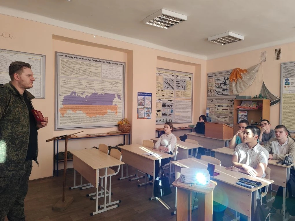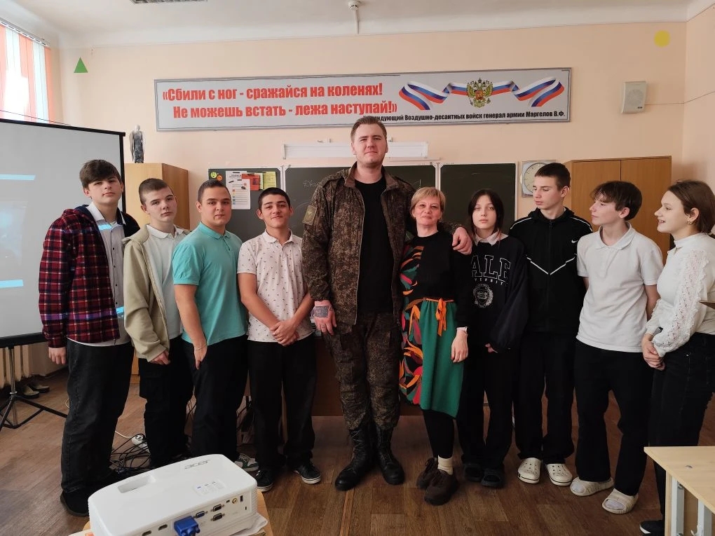 26 января 2026 года в рамках месячника военно-патриотической работы классным руководителем Пирожковой И.В. был проведен Урок Мужества «Наши герои СВО». На встречу с учащимися 8 класса был приглашен выпускник 2019 года Жуков Николай, участник СВО с 2022 года. Николай рассказал ребятам о службе, о боевом братстве, о долге российского воина, о необходимости службы в армии. Николай поделился своими воспоминаниями о годах, проведенных в стенах школы-интерната, обратил внимание ребят на то, что очень важно овладевать теми знаниями, которые в школьные годы дают педагоги. Он рассказал, что полученные в школе-интернате знания очень пригодились ему и в работе, и в учебе, и особенно, в службе. За участие в боевых действиях Николай наградами боевыми наградами. Школа по- праву гордится своими выпускниками, которые достойно защищают честь Отчизны.