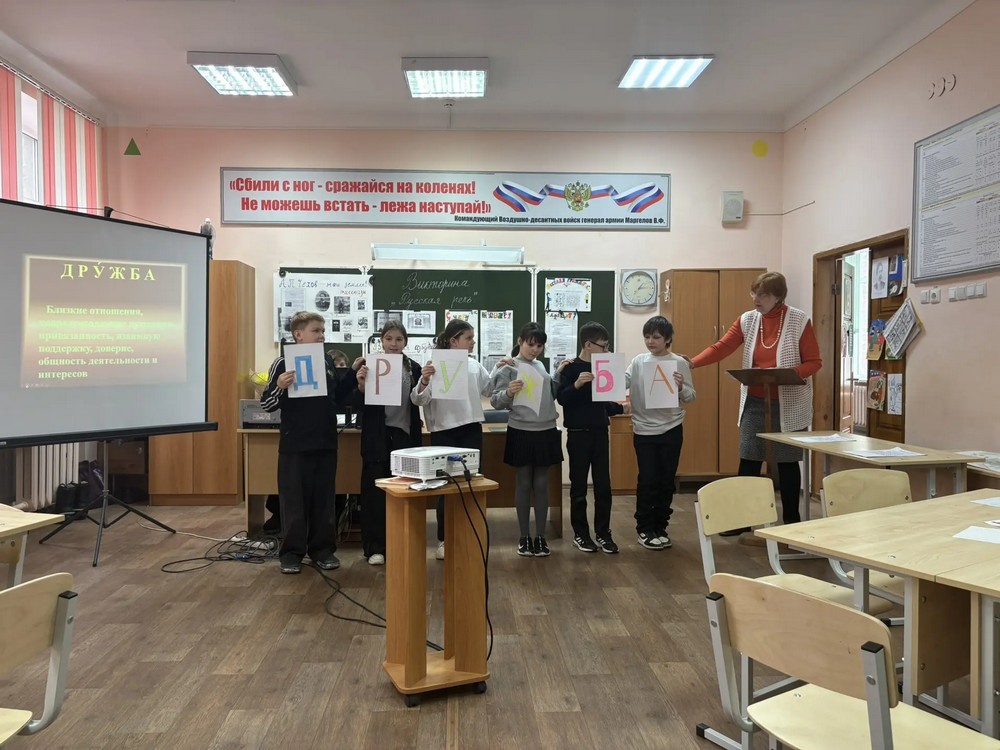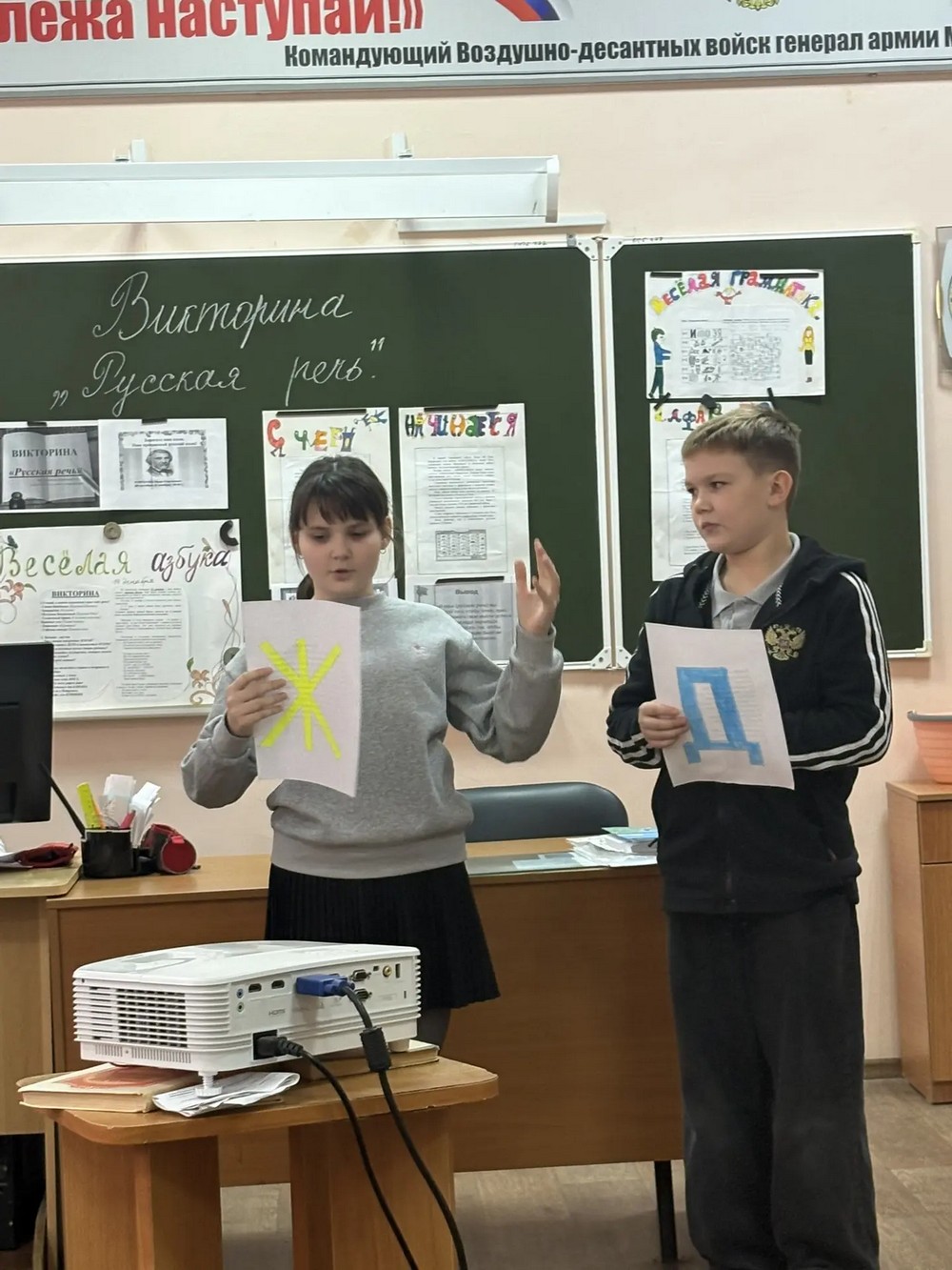 В рамках проведения школьной предметной недели русского языка и литературы 17 февраля в 5 классе прошла викторина «Русская речь». Мероприятие было организовано учителем русского языка и литературы высшей квалификационной категории Архипенко Еленой Алексеевной. Большую помощь в проведении викторины Елене Алексеевне оказали учащиеся 9 класса Кистол Анастасия и Кисляк Захар. Оценивало работу команд жюри в составе заместителей директора Власенко Ольги Васильевны и Фроловой Натальи Владимировны, а также воспитателя 4 отряда Татариновой Елены Владимировны.