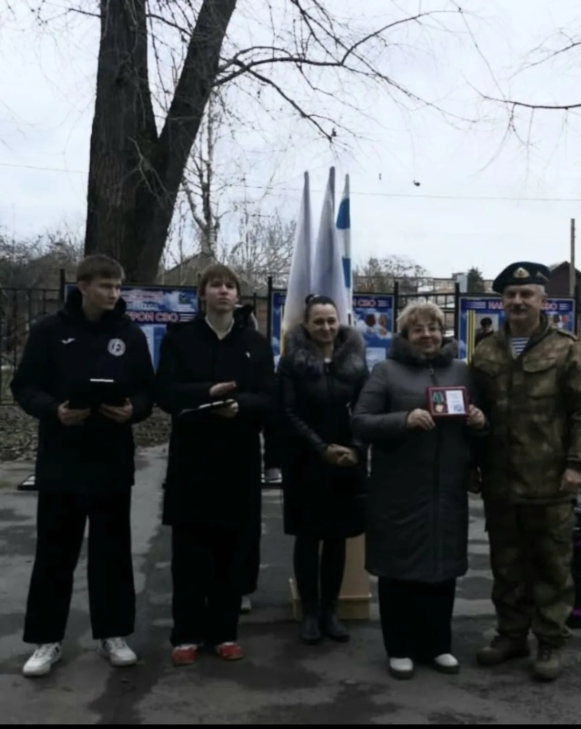 23 декабря 2025 года на территории таганрогского филиала была открыта передвижная фотовыставка, посвящённой героям-таганрожцам -участникам СВО, которые продолжают служить Отчизне и награждены высокими правительственными наградами за проявленные мужество и героизм! Фотовыставка была создана в рамках проекта "НАШИ ГЕРОИ СВО!" Данный проект стал победителем городского конкурса среди социально ориентированных некоммерческих организаций. Авторами проекта являются "Союз десантников Таганрога" (председатель гвардии майор А. Сетьков) и волонтерское движением "Никто, кроме нас!» (руководитель Кузнецова Ю.). На открытии выступили авторы проекта Седьков А.А., ветеран СВО лейтенант Сергей Вергизов, награжденный медалью «За храбрость» 1 и 2 степени. Коллектив филиала принял активное участие в акции «Новогодний подарок солдату» и передал членам "Союза десантников Таганрога" очередную партии гуманитарной помощи и письма, которые ребята написали сами. За многолетнее сотрудничество и активное участие в волонтерском движении коллективу была вручена медаль командира в\ч 46108 медаль «За помощь фронту». До 28 декабря выставку посещали не только обучающиеся и сотрудники филиала, но и родители воспитанников.