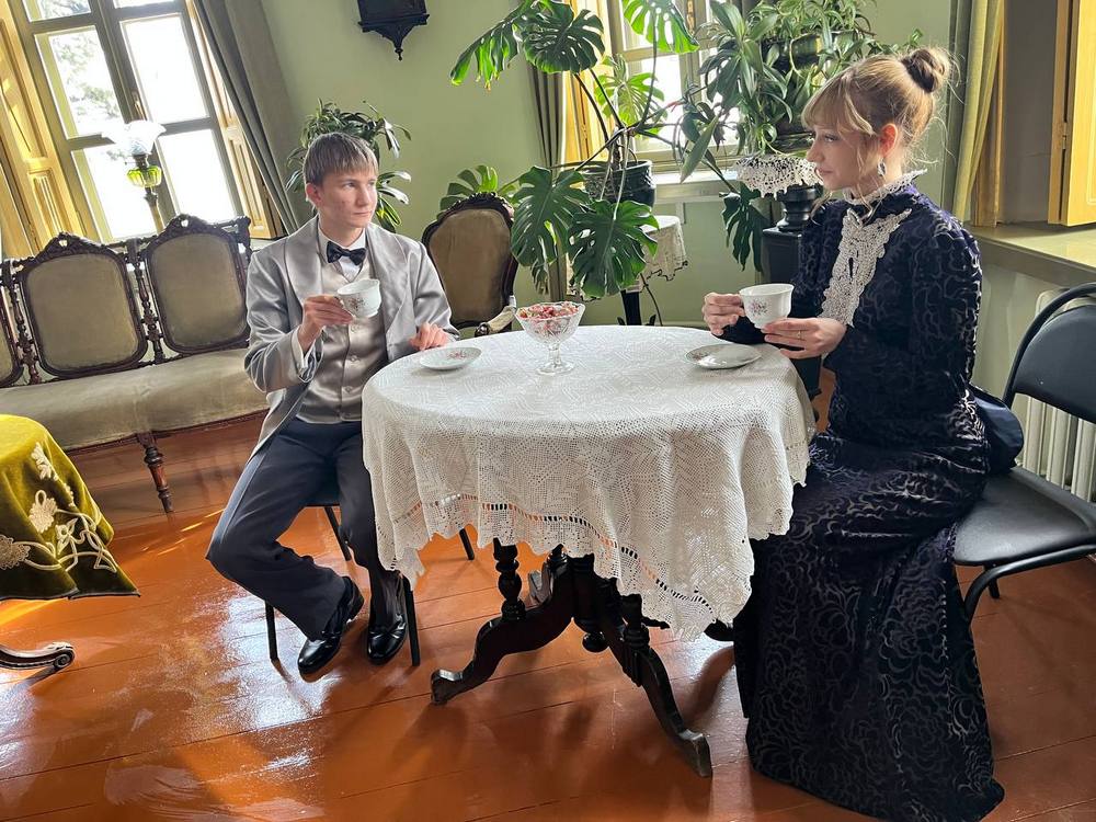 Чехов очень любил музыку. Слушание музыки давало писателю ощущение радости жизни. Пока в музее собирались гости, стены дома наполняли звуки флейты. Украшением данного мероприятия стала инсценировка рассказа А.П. Чехова «Размазня», которую исполнили воспитанники студии театральных миниатюр «Подмостки (руководитель Фролова Н.В.) Чупрун Демьян и Сурикова Арина.