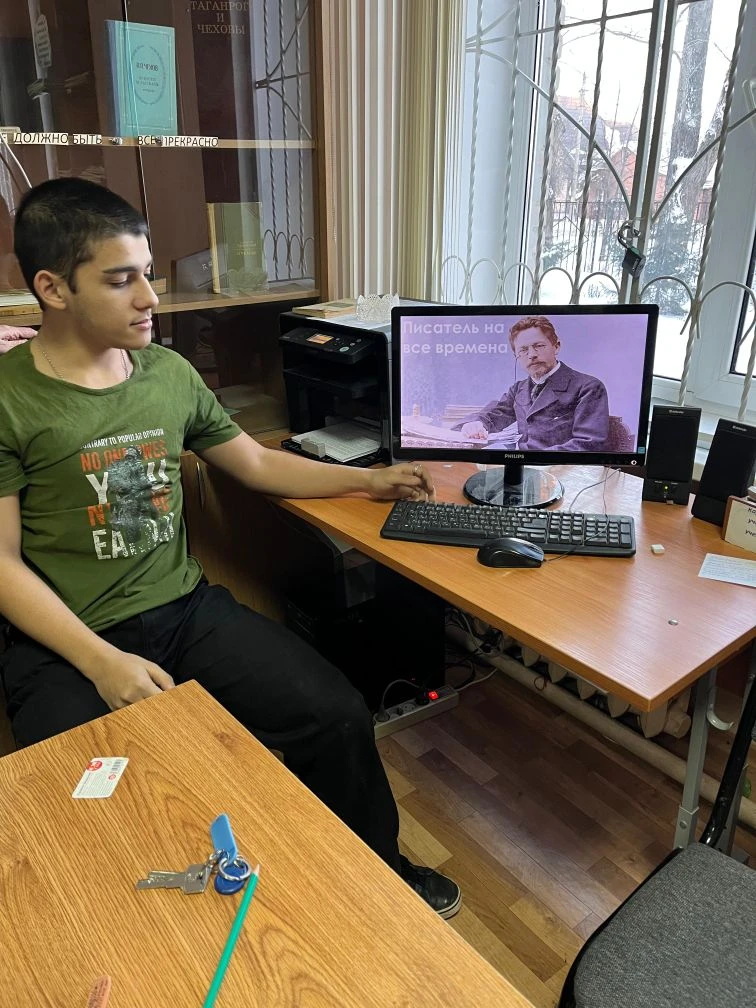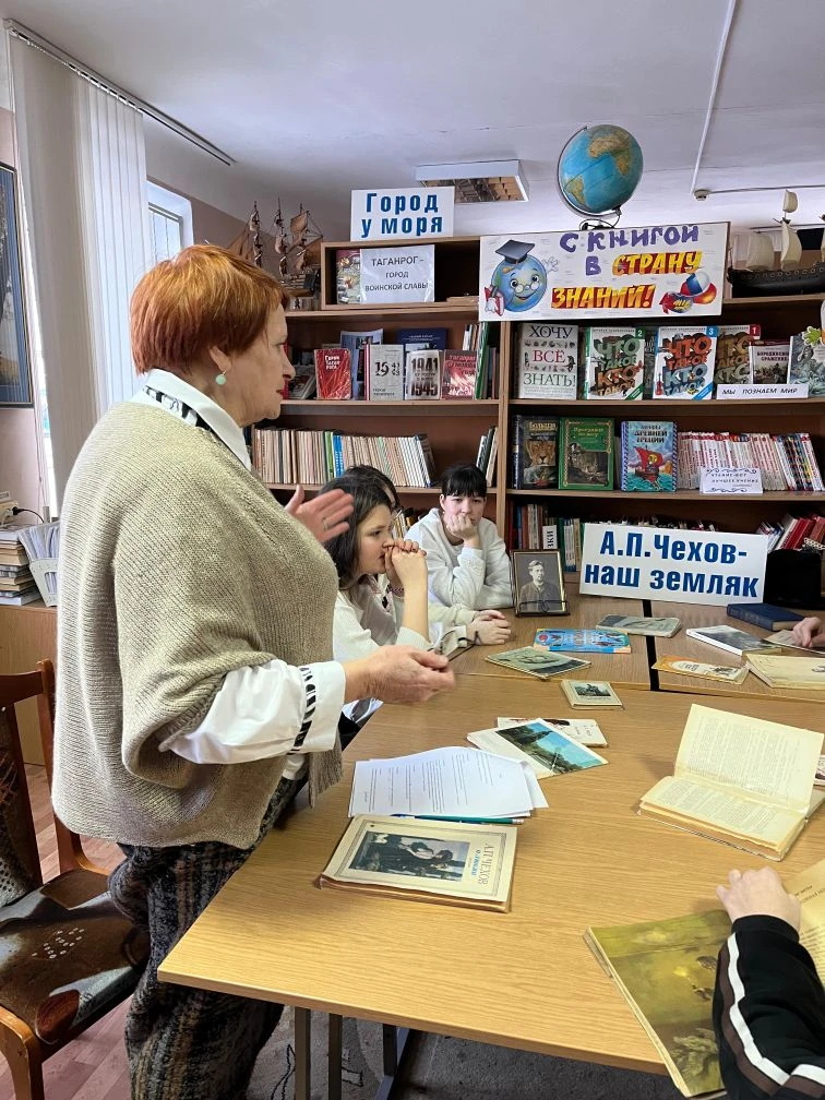 27 января 2026г.в библиотеке Таганрогского филиала воспитателей Котляровой З. Р. Проведён воспитательский час для воспитанников 5 отряда "Читаем А. П. Чехова". Ребята не только освежили в памяти интересные факты из жизни великого земляка и его семьи, но и прочитали отрывки из произведений: "Дядя Ваня", "Вишнёвый сад", "Студент". Время читательского часа пролетело незаметно. А значит А. П. Чехов, по- прежнему, вызывает интерес как у взрослых, так и у школьников.