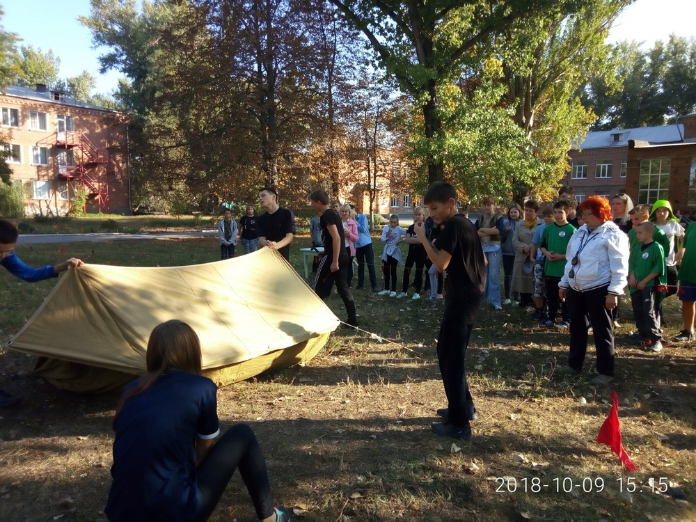 09 октября 2018 года в ГКОУ РО «Таганрогская санаторная школа-интернат» прошли общешкольные соревнования «Туристская полоса препятствий». Предварительная подготовка начиналась с формирования команд и выбора судей на этапах.Полоса препятствий состояла из 8 этапов: бег 30 метров, бег по бревну,преодоление забора (три параллельные жерди), маятник (участник при помощи каната маятником (качели) должен перебраться на другую сторону препятствия, мышеловка (пролезть под натянутой волейбольной сеткой), преодоление вертикальных препятствий (прыжки через колеса), «С кочки на кочку». Финальный (общекомандный) этап - установка палатки. Победители были награждены грамотами и сладкими призами.