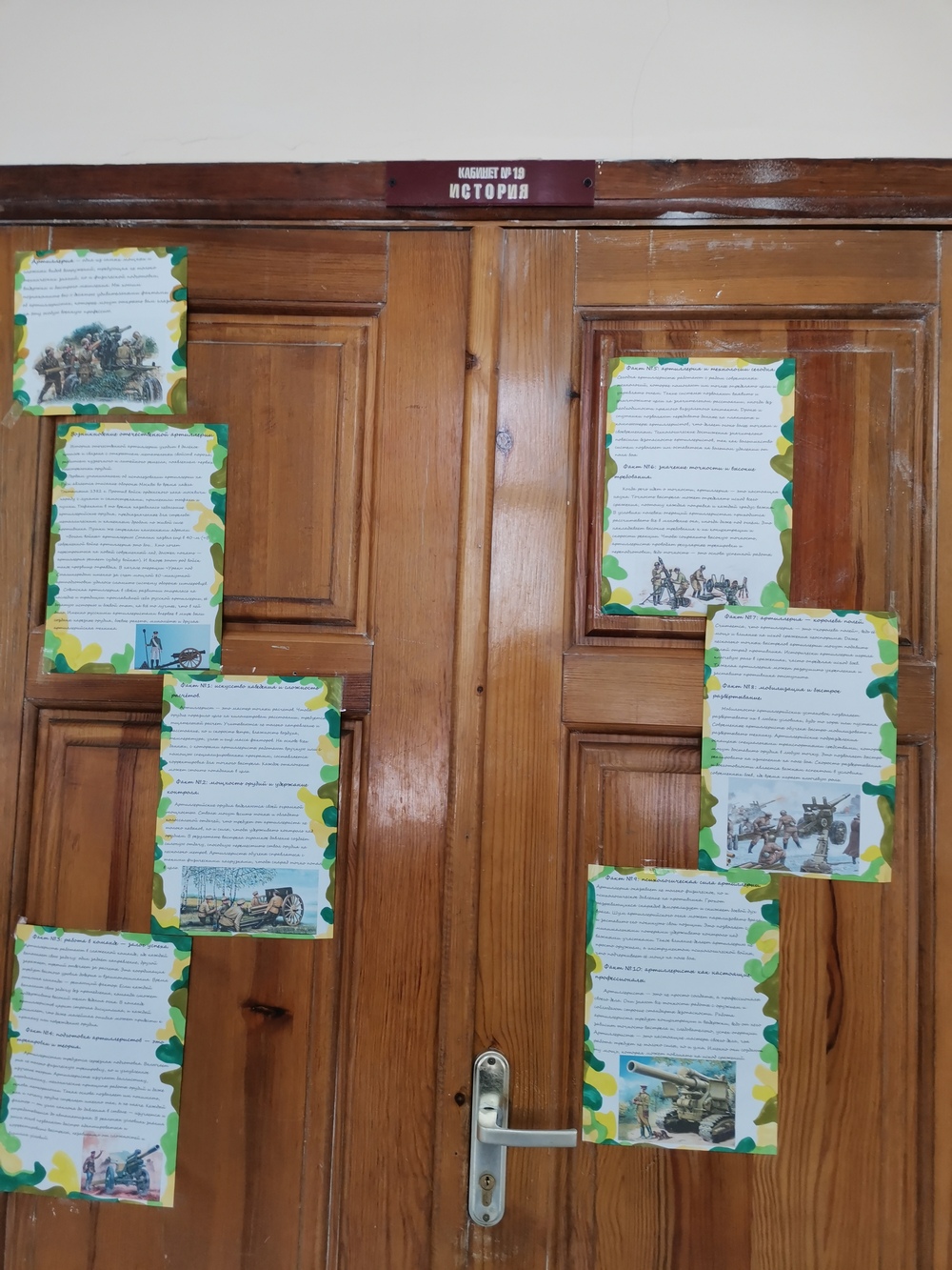 На основании письма Министерства общего и профессионального образования РО № 24/6.2-3139 от 24.02.2025г. и в соответствии с планом патриотического воспитания в Таганрогском филиале ГКОУ РО «Ростовская-на-Дону санаторная школа-интернат № 74» проведена работа с использованием материалов, посвященных 80-й годовщине Победы советского народа в Великой Отечественной войне 1941-1945 годов. Были проведены классные часы «Подвиг народа» в 8 – 11 классах, оформлен стенд «История – это наука, которая делает человека гражданином!», размещены материалы в социальных сетях.