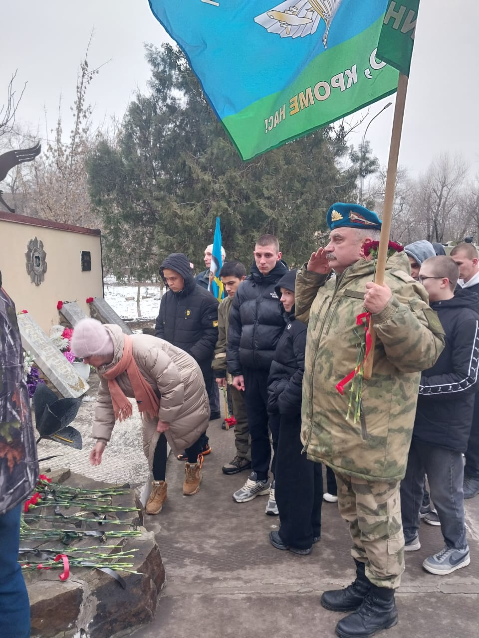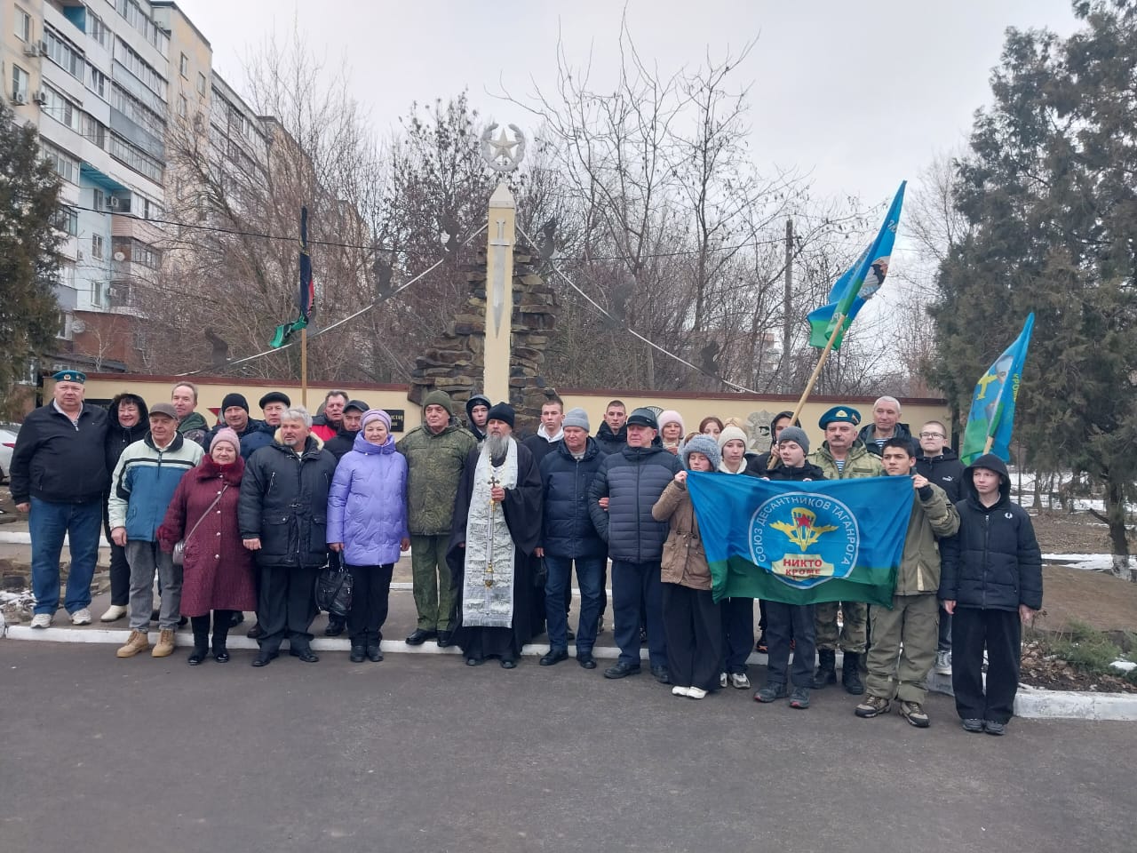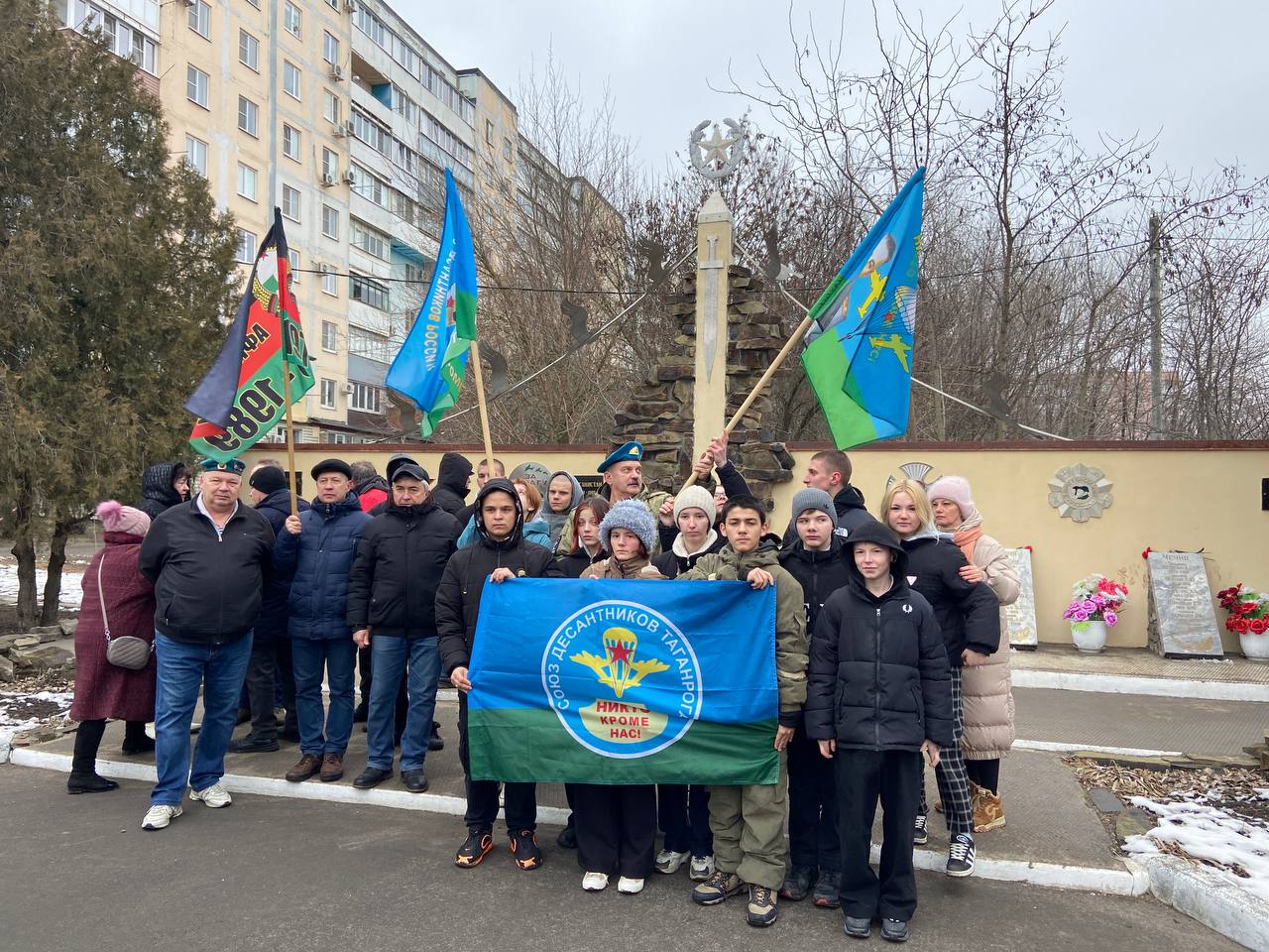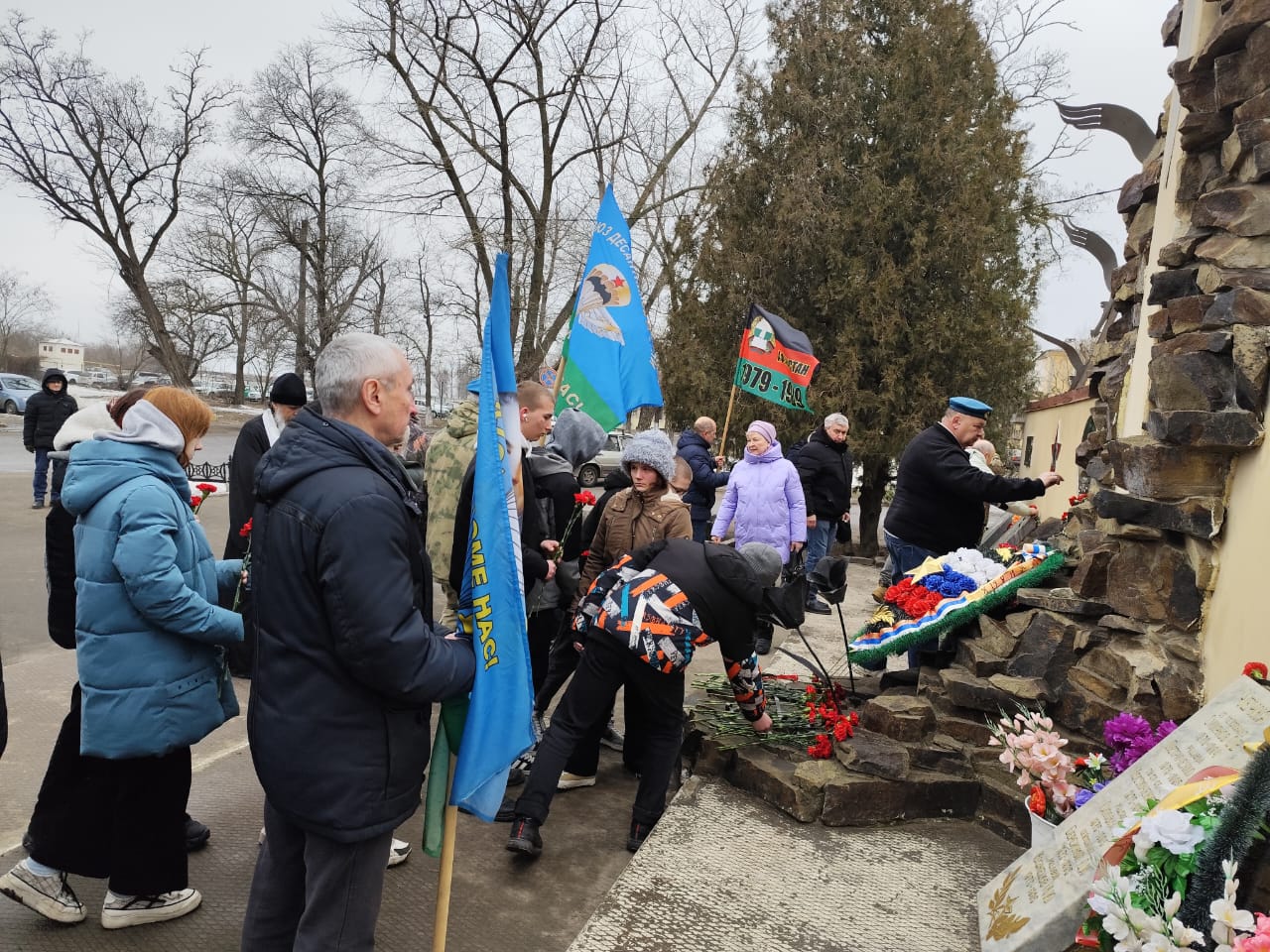 15-го февраля 2025 года ветераны "Союза десантников Таганрога", ветераны-афганцы, волонтёры движения "Никто, кроме нас!" и ученики Таганрогского филиала ГКОУ РО «Ростовская-на-Дону санаторная школа-интернат № 74» собрались в военном городке на мемориале "Чёрный тюльпан, чтобы почтить память о всех погибших воинах-интернационалистах и возложить цветы к мемориалу.