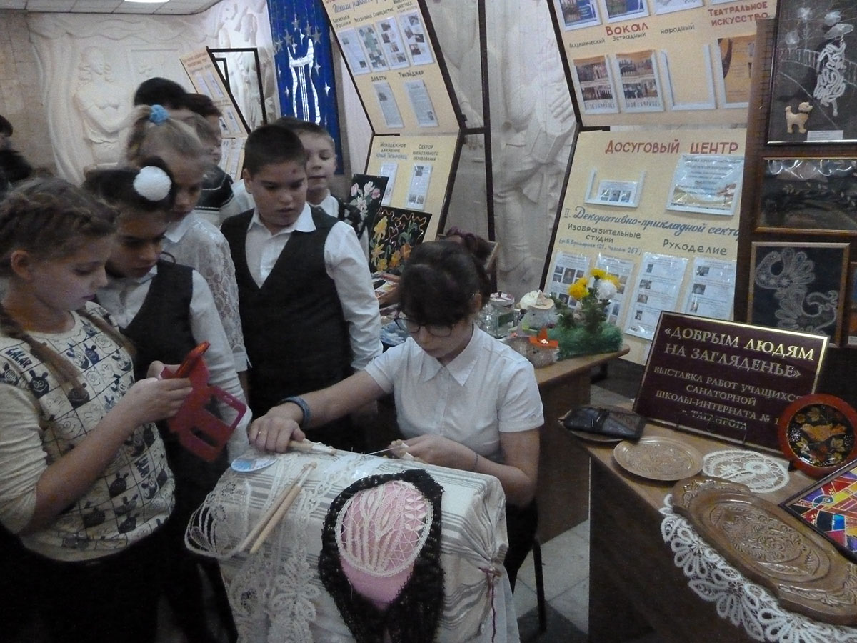 1 декабря 2016 года в Таганроге прошла IV региональная социальная акция «Солнышко в ладошках» в рамках Всероссийской программы «Доступная среда» в поддержку детей с ОВЗ. Впервые в акции приняли участие творческие коллективы ГКОУ РО «Таганрогская санаторная школа-интернат». В концертной программе выступили танцевальный ансамбль «Жемчужина» (руководитель Митасова М.И.) и вокальный ансамбль (руководитель Апанасенко А.П.). Педагоги дополнительного образования Сазоненко Е.А. и Галустян С.Н. представили выставку детского декоративно-прикладного творчества. Ученица 7 класса Сысоева Алена провела мастер-класс по кружевоплетению для всех участников акции.