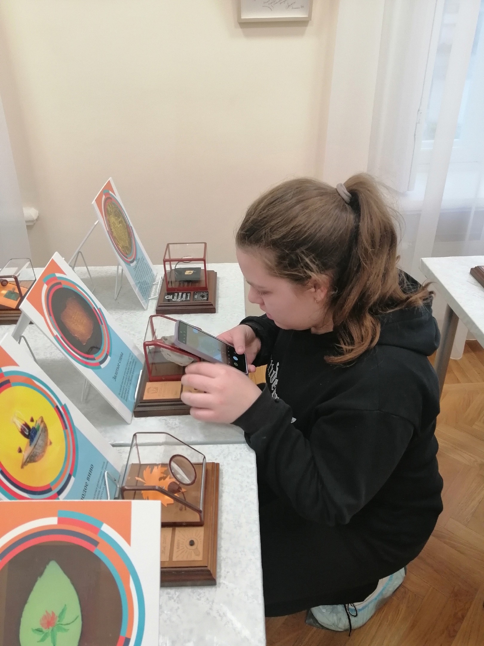 В музее таганрогского писателя И.Д. Василенко разместилась необычная для нашего города выставка. Название «Шедевры микроискусства» говорит само за себя. На выставке были представлены уникальные работы новосибирского мастера микроминиатюр Владимира Анискина. 24 и 29 ноября 2023 года группа старшеклассников Таганрогского филиала ГКОУ РО «Ростовская-на-Дону санаторная школа-интернат № 74» посетила эту удивительную выставку по Пушкинской карте. Ребят привели в восхищение работы, выполненные на срезе макового, рисового зернышек и зернышка яблока. Рассмотреть работы можно было только при помощи увеличительных стекол или под микроскопом. Мальчиков, занимающихся спортом, поразили рисунки символа чемпионата мира по футболу – Забиваки и кубка УЕФА, выполненные на рисовом зерне. Девочкам больше всего понравилась работа «Роза в волосе», выполненная из пыли, которая была размещена в конском волосе.